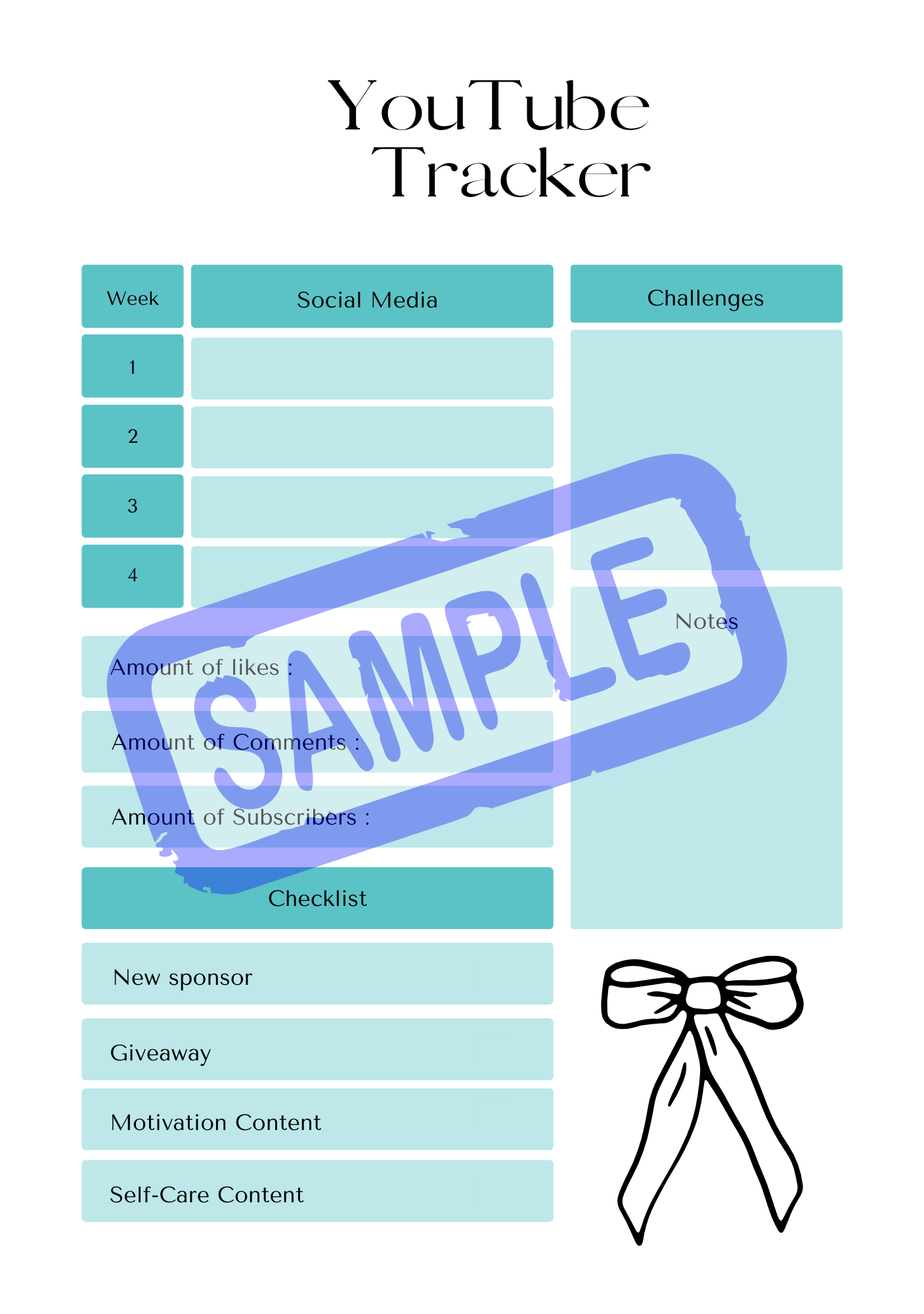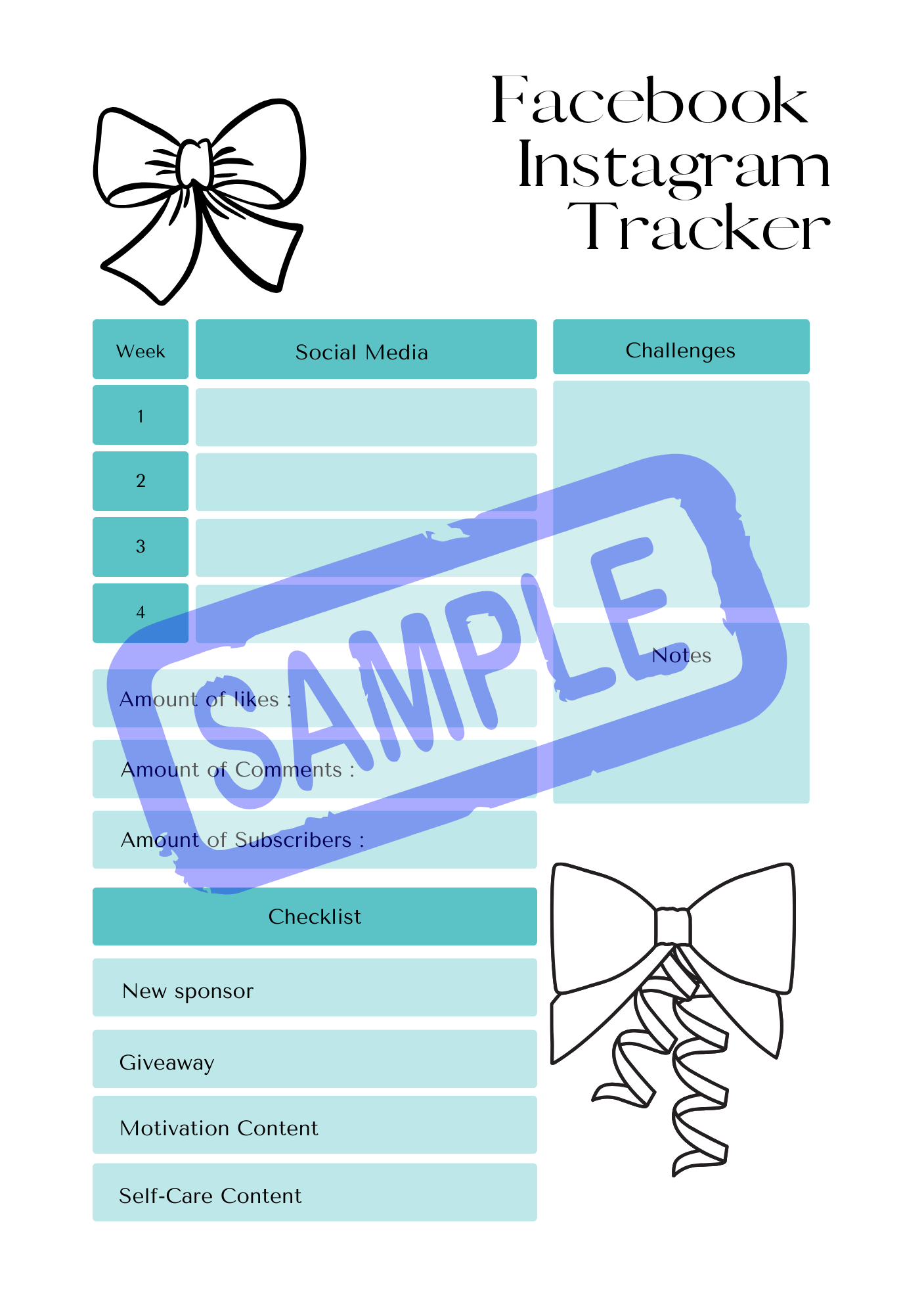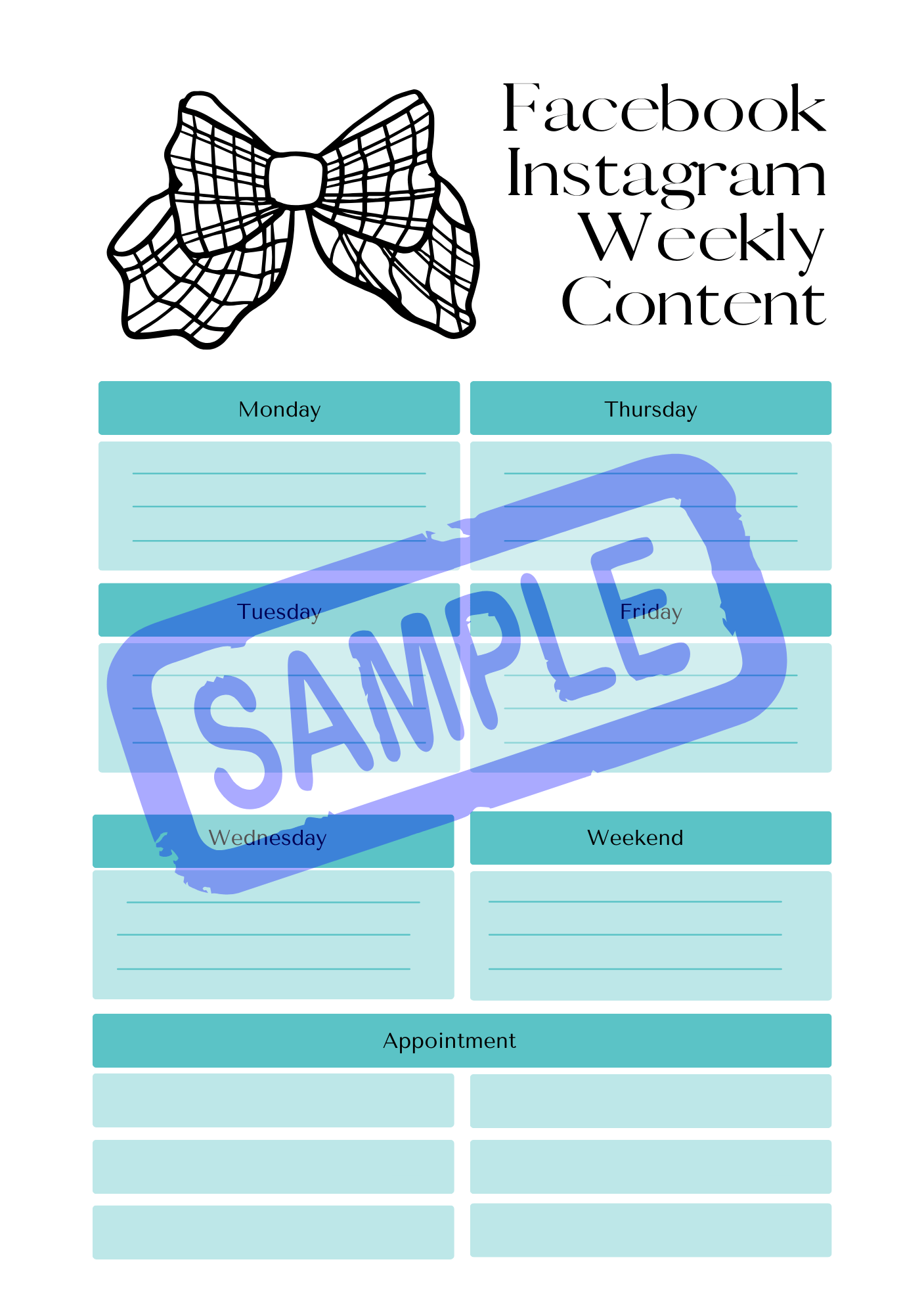 Blue Bows Social Media Planner - A5 printable