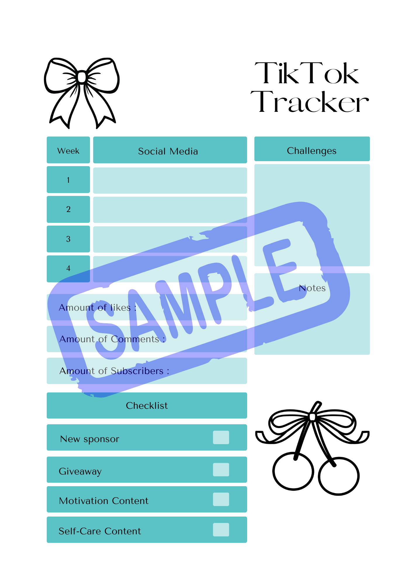 Designed for creators building on TikTok, Instagram, Facebook, and YouTube, this planner helps you plan your content, track your numbers, and evaluate your strategy—weekly and monthly.