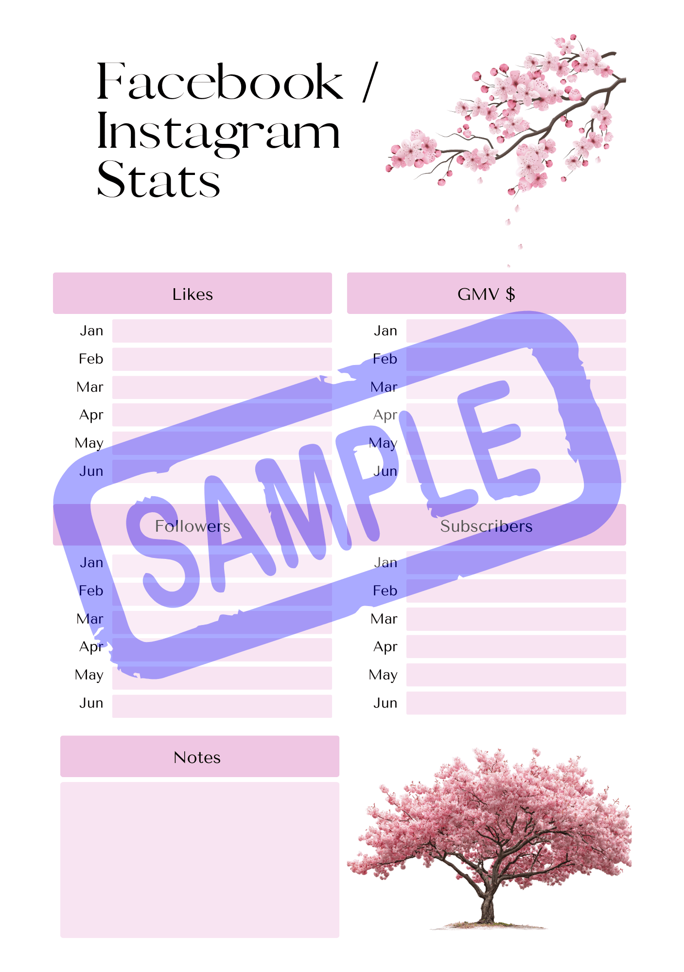 Cherry Blossom Social Media Planner - A5